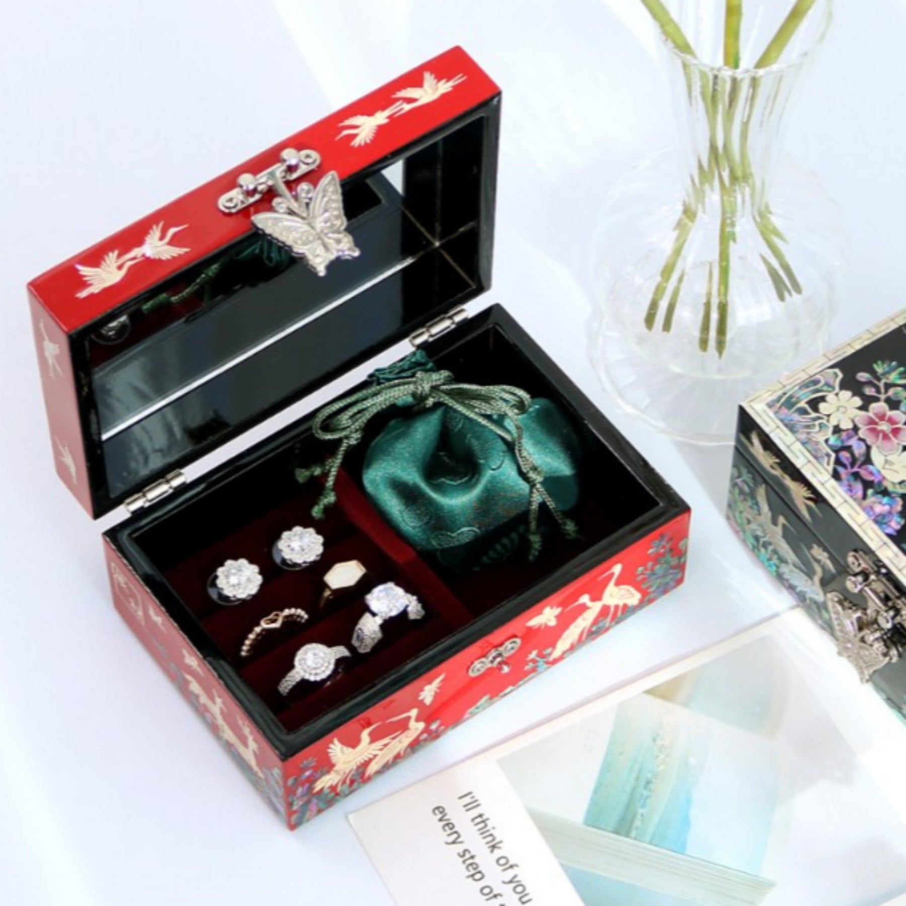- This Mother-of-Pearl Inlaid Lacquerware Jewelry Box is a stunning piece of Korean traditional craft.