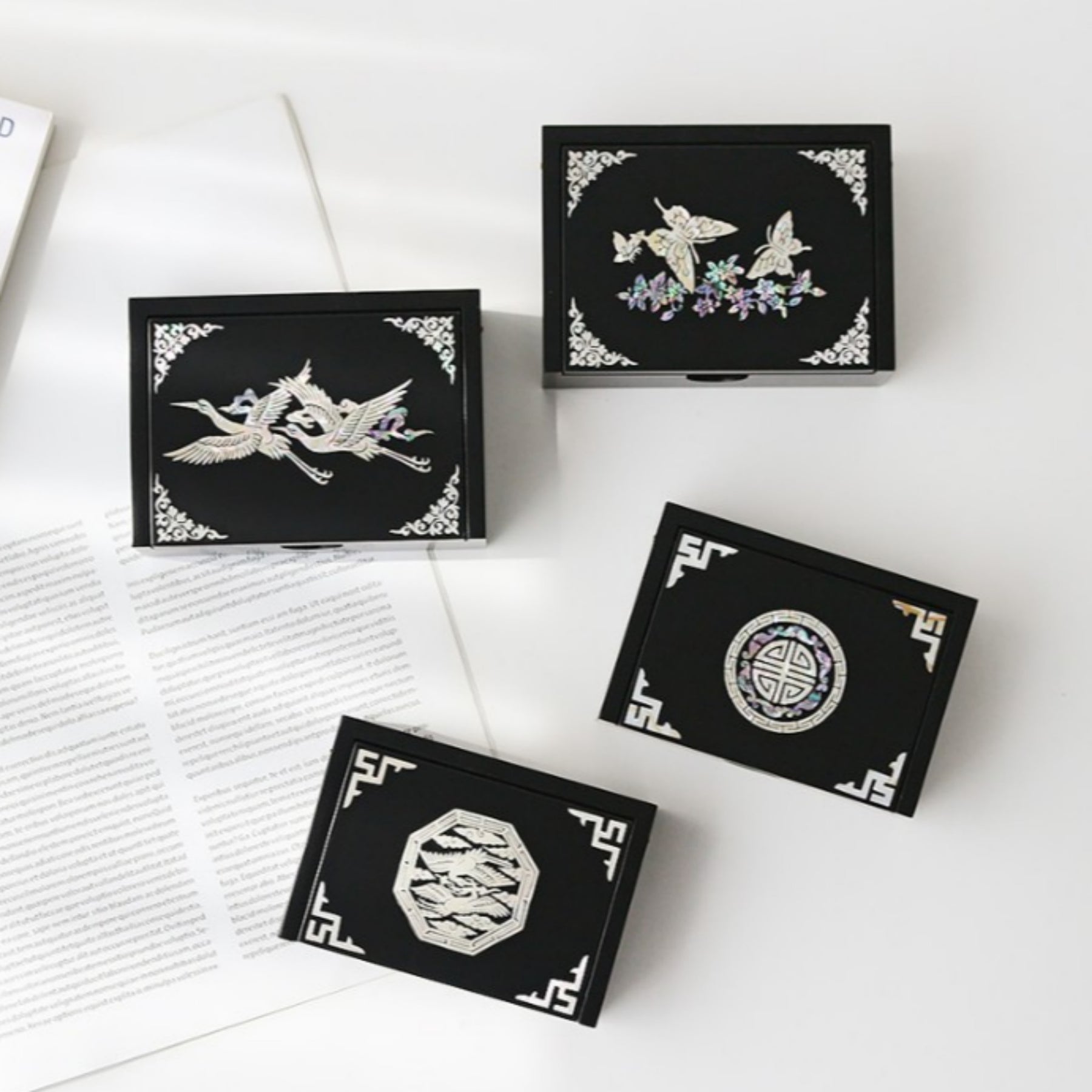 - This exquisite card case showcases the timeless beauty of Korean mother-of-pearl lacquerware (Najeon Chilgi) craftsmanship.