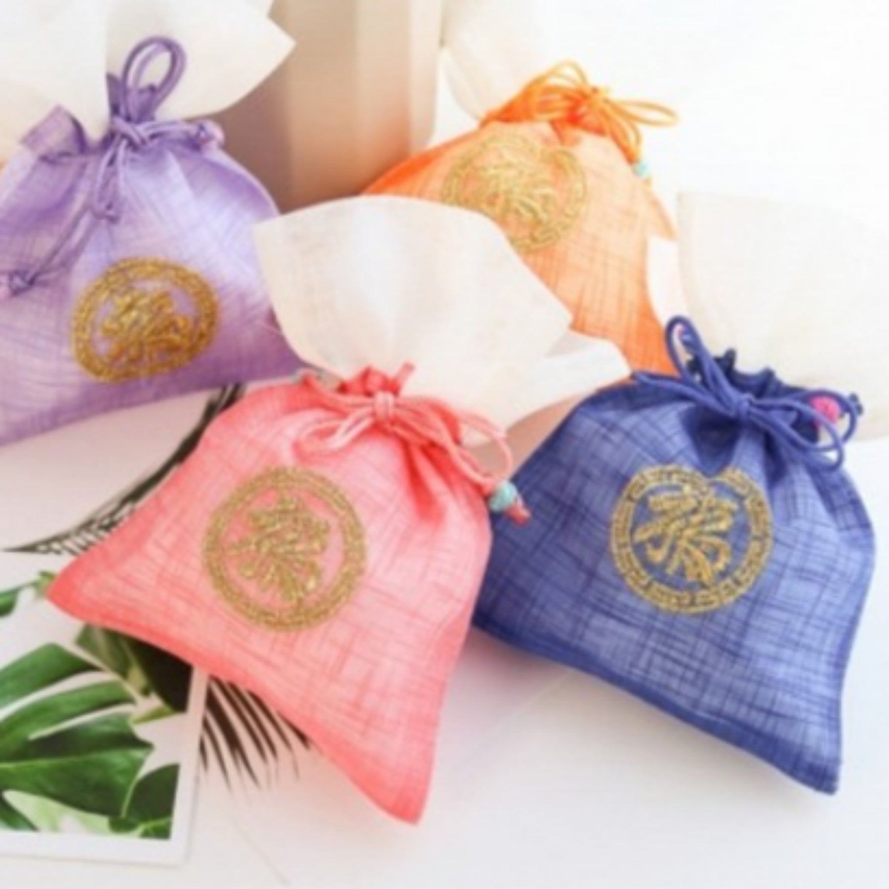 Made from fine ramie fabric, each pouch features a gold embroidered character symbolizing fortune and longevity, bringing a touch of meaning to your gift-giving.