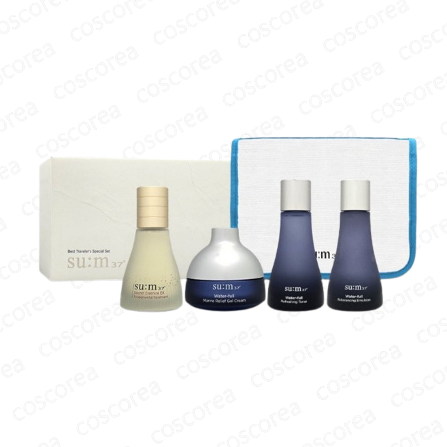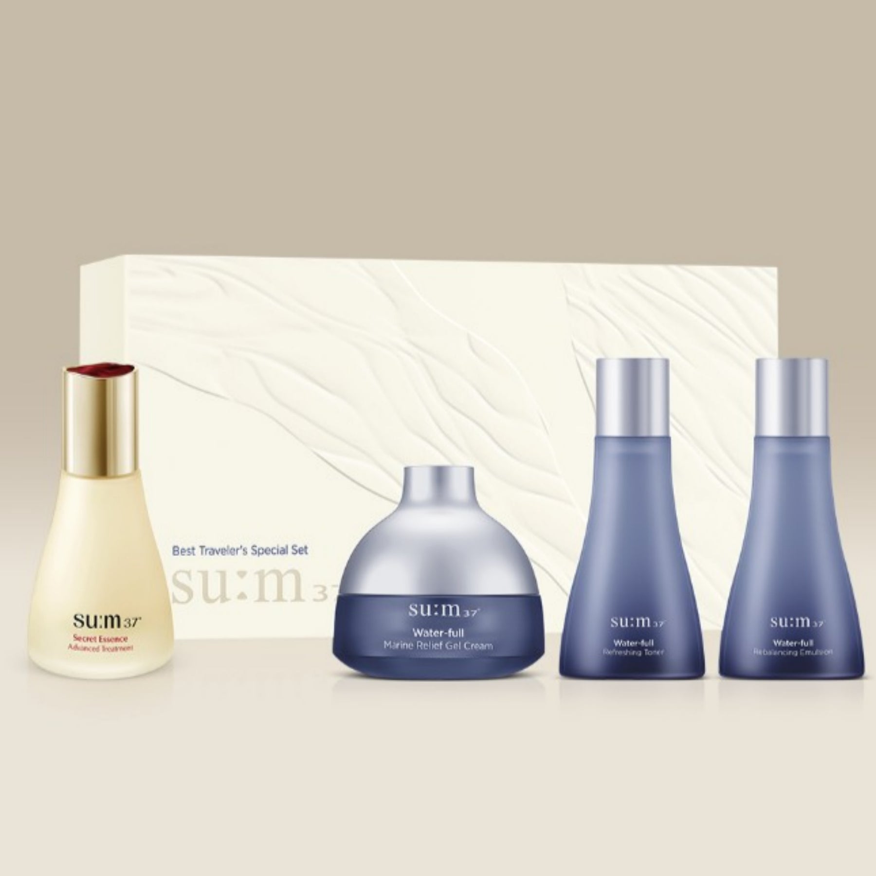 - A curated travel-size skincare set from SUM37°, featuring the brand’s best-selling fermented formulas. Perfect for on-the-go routines, this set delivers hydration, radiance, and skin-balancing benefits in compact, easy-to-carry sizes. Ideal for travel, gifting, or trying SUM37°’s signature essentials.